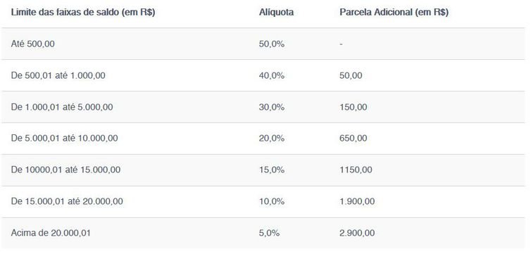 O valor a ser liberado varia conforme o saldo de cada conta em nome do trabalhador. Além de um percentual, ele receberá um adicional fixo, conforme o total na conta. O valor a ser sacado varia de 50% do saldo sem parcela adicional, para contas de até R$ 500, a 5% do saldo e adicional de R$ 2,9 mil para contas com mais de R$ 20 mil.