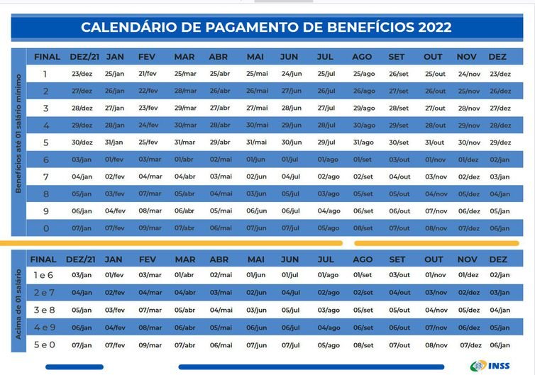 Confira calendário de pagamentos do INSS de 2022