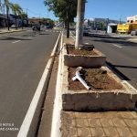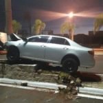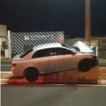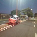Um Toyota Corolla ficou sem direção e subiu no Canteiro central da avenida. O motorista teria dormido ao volante. Toda a parte frontal do veículo ficou danificada, sendo que a estrutura também teve avarias com o impacto. O poste onde o carro colidiu precisará ser substituído pela Prefeitura.
