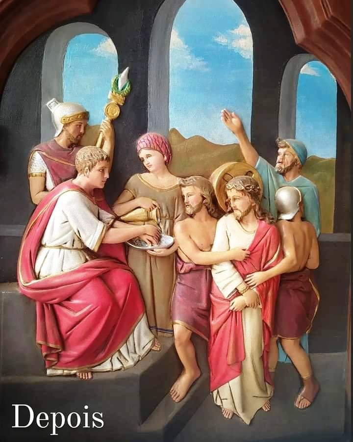 “Trago na memória a lembrança de que, ainda criança, na fila à espera da merenda, ficava admirando as Estações, já desgastadas pelo tempo, da lindíssima Via Sacra que ficava nas paredes do refeitório do Seminário, onde na época funcionava a Escola Primária Augusto Reis. Mal imaginava que quase trinta anos depois teria eu a honra de restaurar tão rico e importante acervo de Arte Sacra”, comemora o artista.