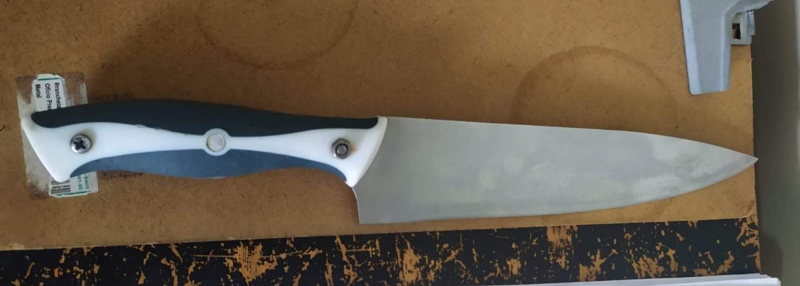 A faca utilizada na agressão foi localizada e apreendida pelos agentes. Como a agressora estava sob efeito de entorpecentes e muito agressiva houve a necessidade de imobilização e acionamento de ambulância. Todas as pessoas envolvidas foram encaminhadas ao Pronto Socorro para atendimento médico.