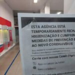 Avisos nas portas orientam quanto a “higienização e cumprimento de medidas de prevenção ao novo coronavírus”. Nem mesmo o uso de caixas eletrônicos está disponível.