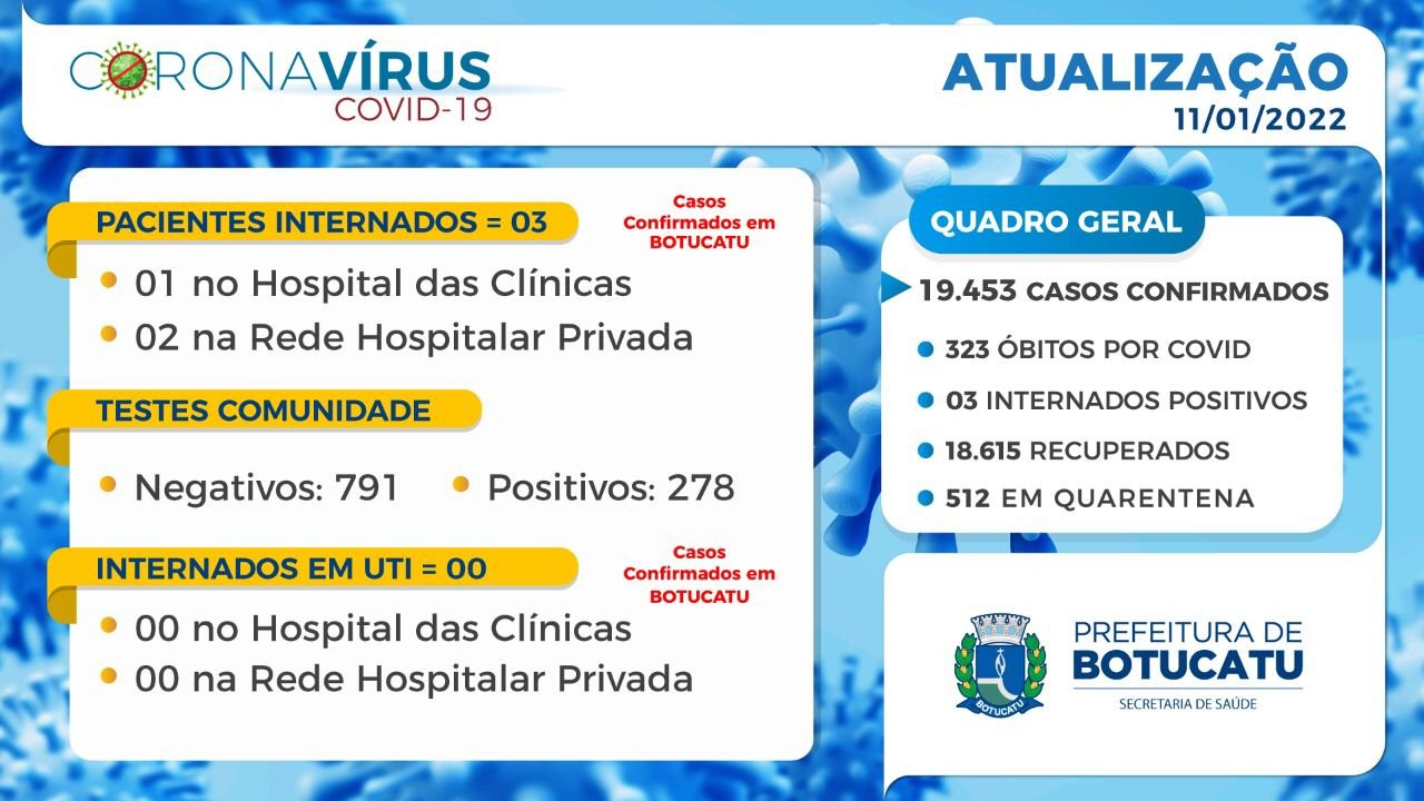 Botucatu teve 19.453 moradores infectados desde o início da pandemia, com 18.615 pessoas recuperadas. Ocorreram 323 mortes.