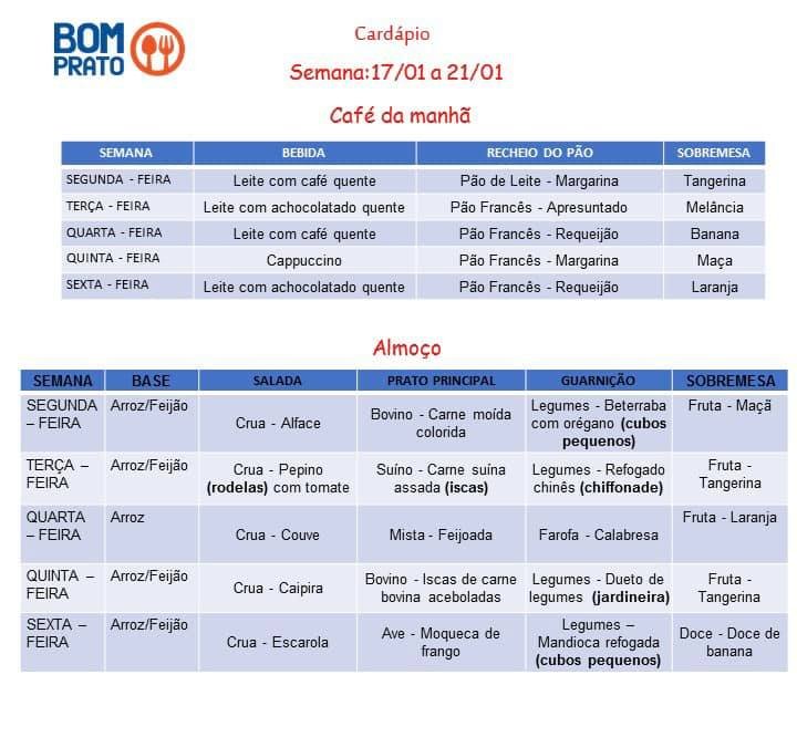 O Bom Prato Botucatu divulgou nesta segunda-feira, 17 de janeiro, o cardápio semanal do restaurante para os próximos dias úteis.