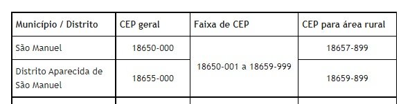 A partir de 1º de fevereiro, o municípios de São Manuel contará com Código de Endereçamento Postal – CEP por logradouro. Cada quadra, rua, alameda, viela, avenida e travessa passará a ter CEP específico, todos codificados dentro de sua faixa própria de CEP, substituindo o CEP padrão, utilizado atualmente. A área rural também contará com CEP exclusivo.
