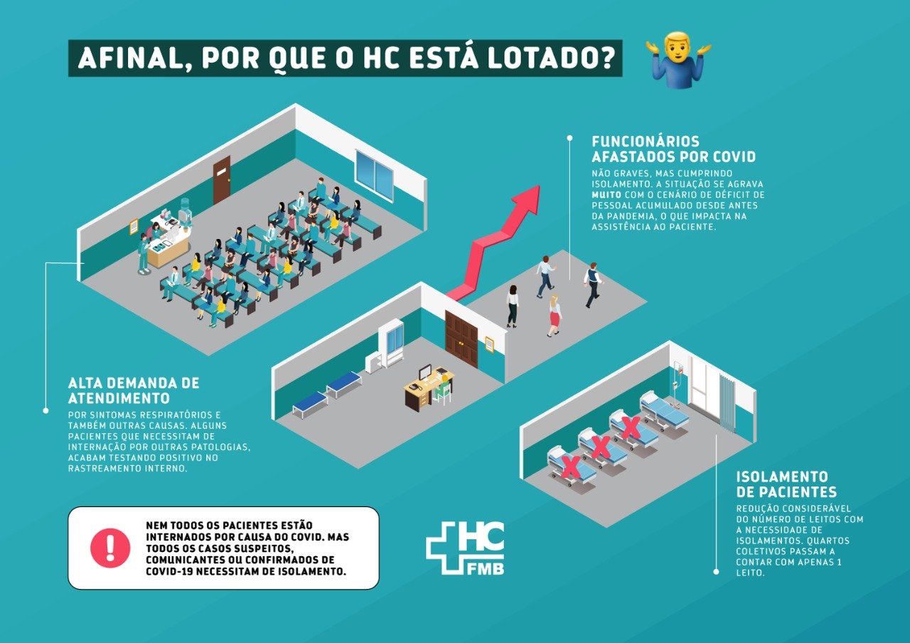 Com o avanço da variante Ômicron e a redução das medidas essenciais de prevenção, o HCFMB atua com uma alta demanda de atendimento de pacientes com sintomas respiratórios, além de outras causas. Alguns pacientes que necessitam de internação por outras patologias acabam testando positivo para coronavírus no rastreamento interno.