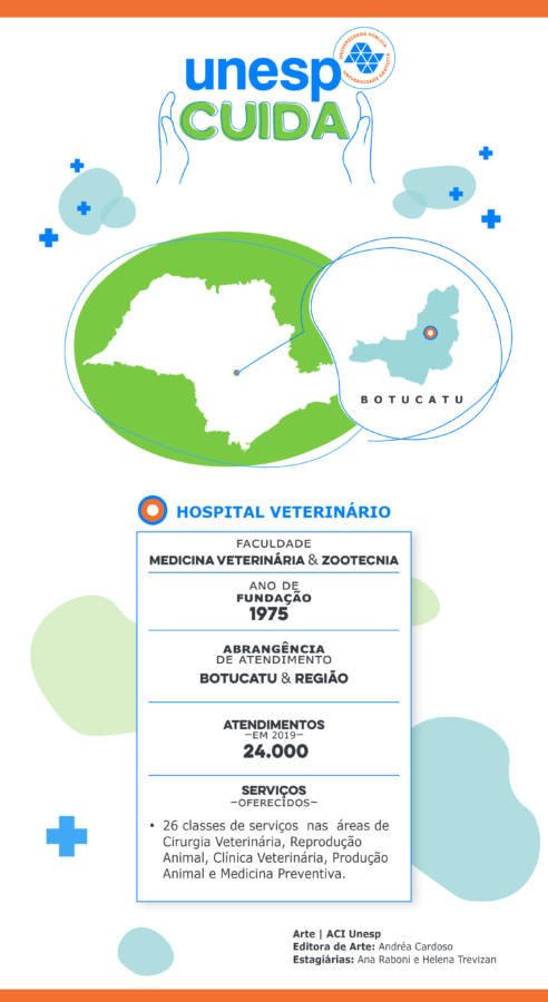 Mesmo em meio à pandemia de covid-19 que há 22 meses varre o planeta, o Hospital Veterinário da Faculdade de Medicina Veterinária e Zootecnia (HV/FMVZ) da Unesp, situado no câmpus de Botucatu, segue atendendo a população. O HV ficou fechado por alguns meses em 2020, mas pôde reabrir e voltar a atuar, adotando um regime diferenciado, que privilegia a segurança. A equipe de 750 funcionários é testada integralmente toda semana, e são afastados tanto os indivíduos que apresentam resultado positivo quanto os que tiveram contato com eles. Ao invés do atendimento por ordem de chegada, oi instituído regime de agendamento prévio. E o número de acompanhantes por animal foi reduzido para um, com a condição de que esta pessoa não apresente sintomas gripais.