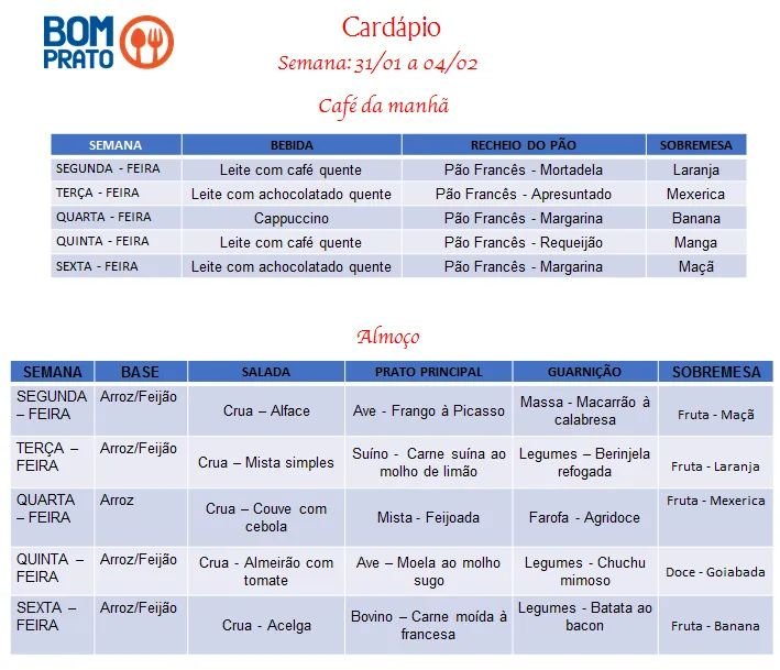 O Bom Prato Botucatu divulgou nesta segunda-feira, 31 de janeiro, o cardápio do restaurante para os próximos dias úteis.