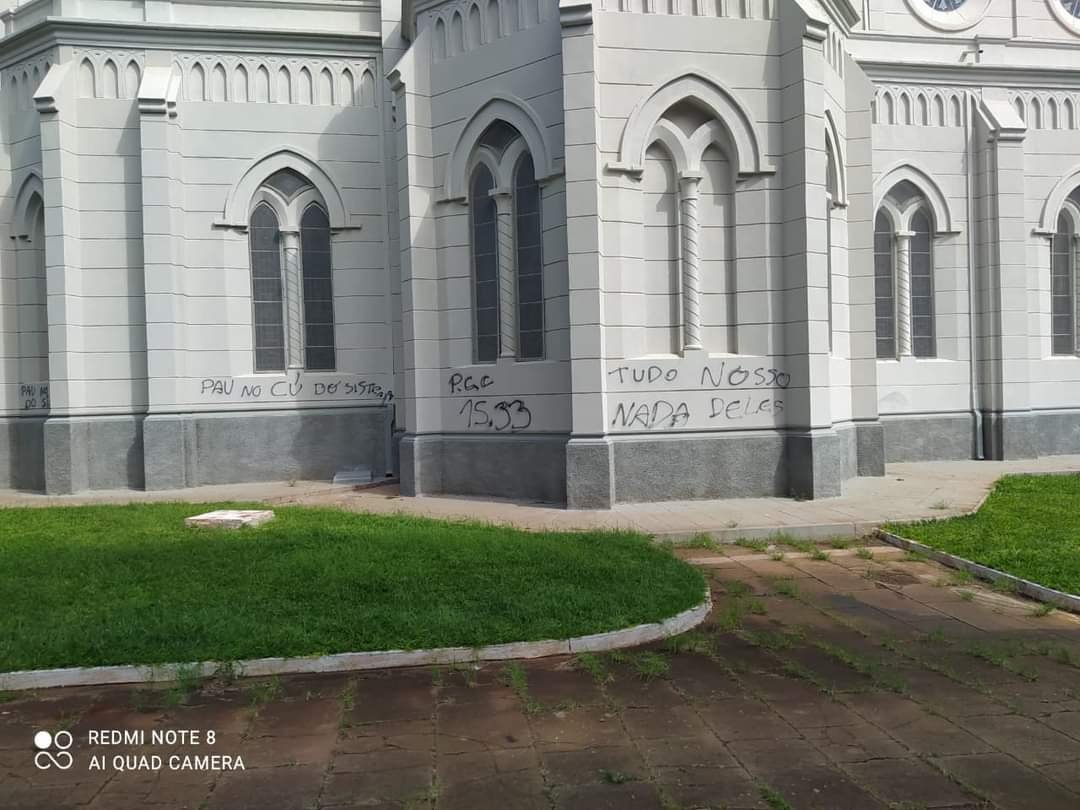 Igreja em São Manuel é alvo de pichação