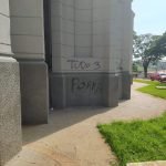 A Polícia Civil já apura potenciais autores do ato e, caso sejam identificados autores, os mesmos poderão responder criminalmente por dano ao patrimônio público e também apologia ao crime.