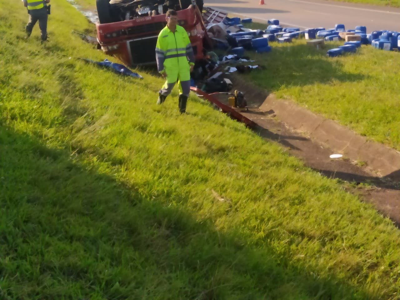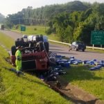 Caminhão com fertilizantes tomba na Rondon e motorista morre