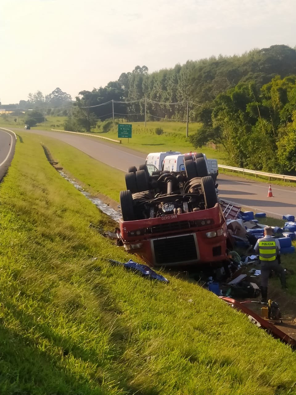 Segundo informações a carreta, com placas de Araçatuba, fazia o trajeto interior-capital, quando por motivos a serem apurados no quilômetro 274,5, o motorista perdeu o controle do veículo e tombou no Canteiro central.