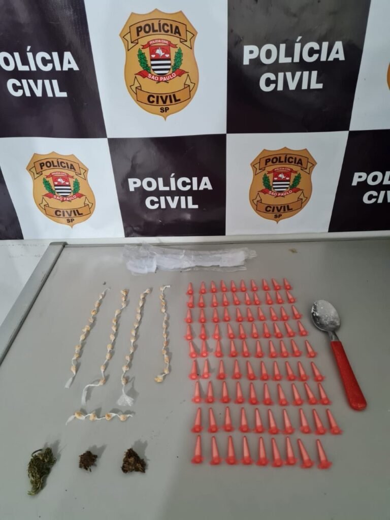 Após a informação que em um bar da cidade, um menor estava traficando drogas, uma equipe do Setor de Investigações Gerais (SIG), da Delegacia de Polícia da cidade (Deinter 7), foi até o local e o flagrou com 89 pinos de cocaína, 48 papelotes de crack, 2 porções de maconha, embalagens plásticas e apetrechos para preparar a droga para a venda.
