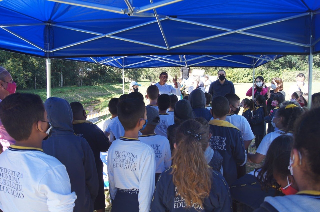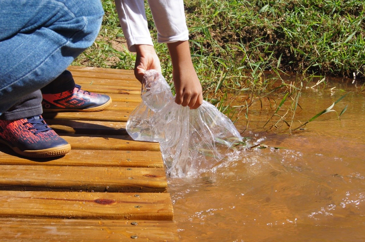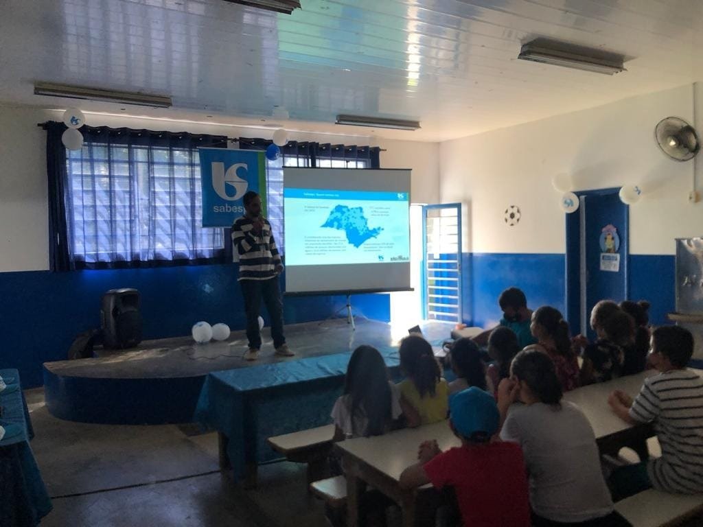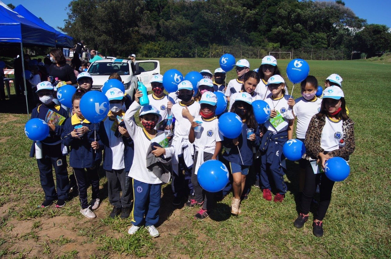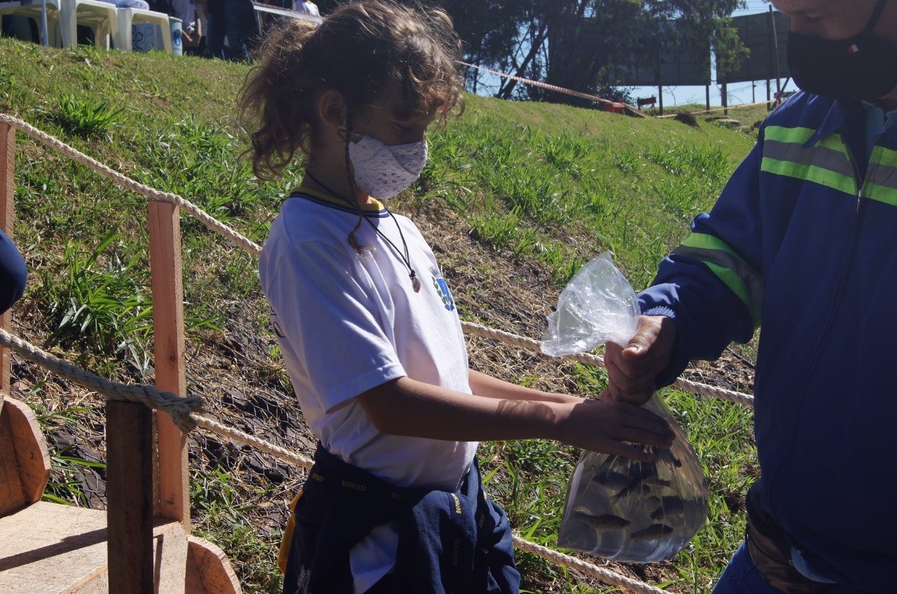Além da dinâmica, a equipe da Sabesp no local também realizou uma breve apresentação a respeito da preservação das fontes e do uso consciente da água. Após todos os peixes serem devidamente soltos na natureza, cada criança recebeu um kit contendo balão, gibi, boné, estojo e um copinho de água da empresa.