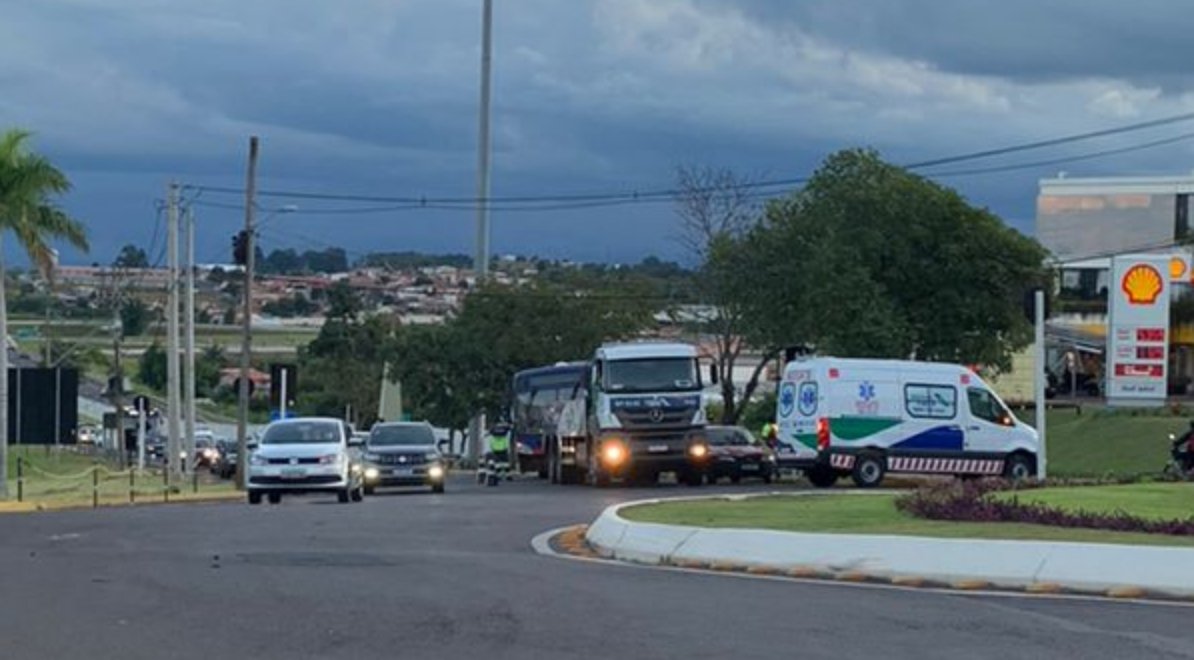 Ônibus destrói obelisco na rotatória de acesso a Botucatu