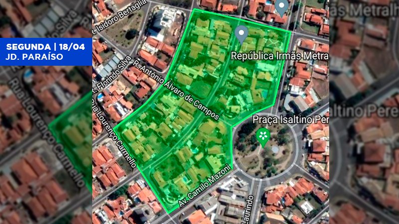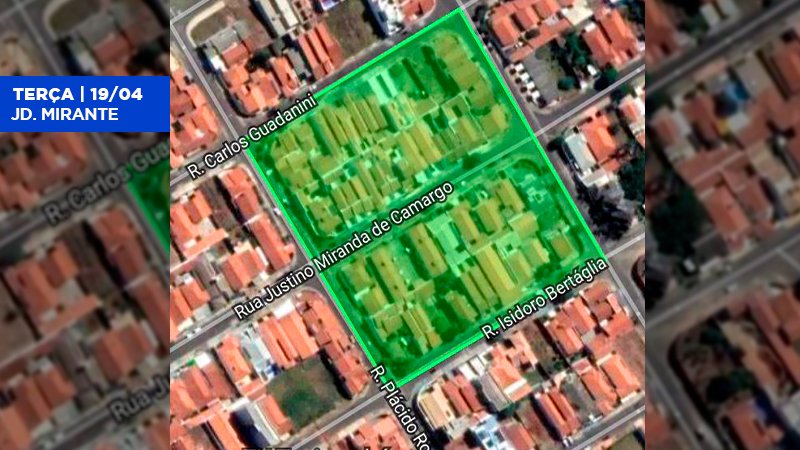 Dando continuidade as ações de combate e controle de criadouros do mosquito da dengue, a Vigilância Ambiental em Saúde (VAS) realizará entre os dias 18 e 20 de abril a aplicação de inseticida através de atomizadores costais no Jardim Paraiso e Jardim Mirante (Região Norte) e Jardim Reflorenda (Região Sul).
