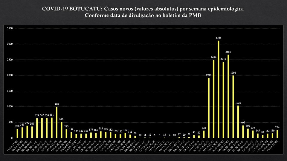 Boletim epidemiológico da Secretaria Municipal de Saúde aponta que foram registrados 254 novos casos de Covid-19 na semana em Botucatu.