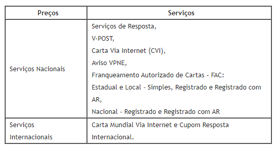Além disso, também serão atualizados os preços públicos dos serviços correlacionados, conforme segue: