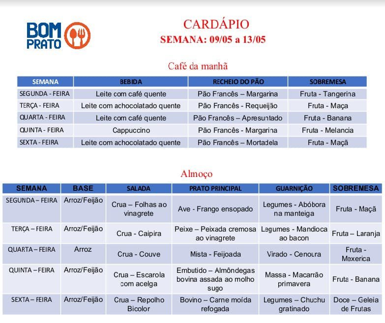 O Bom Prato Botucatu divulgou na segunda-feira, 9 de maio, o cardápio do restaurante para os próximos dias. Restaurante criado e mantido pelo governo do Estado oferece pratos a R$ 1 para atender a população de baixa renda.