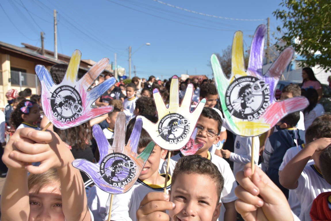 Cerca de 500 alunos da EMEF Jonas Alves de Araújo promoveram na última quarta-feira, 25, uma caminhada nas ruas do bairro Comerciários, arredores da escola, entregando panfletos e conscientizando a vizinhança sobre a importância da prevenção e combate ao mosquito Aedes aegypti, transmissor da dengue. A ação contou com a colaboração da Guarda Civil Municipal.