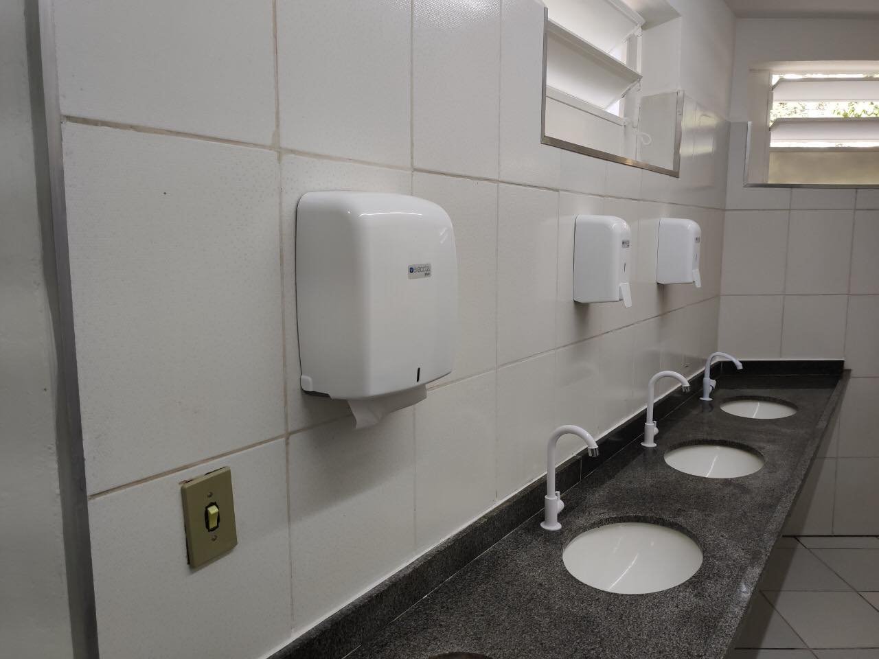 Em ambos os banheiros ocorreu a troca de portas, janelas, azulejos e demais estruturas. Ocorreu pintura nas partes interna e exernas. Investimento nas obras foi de R$ 20 mil.