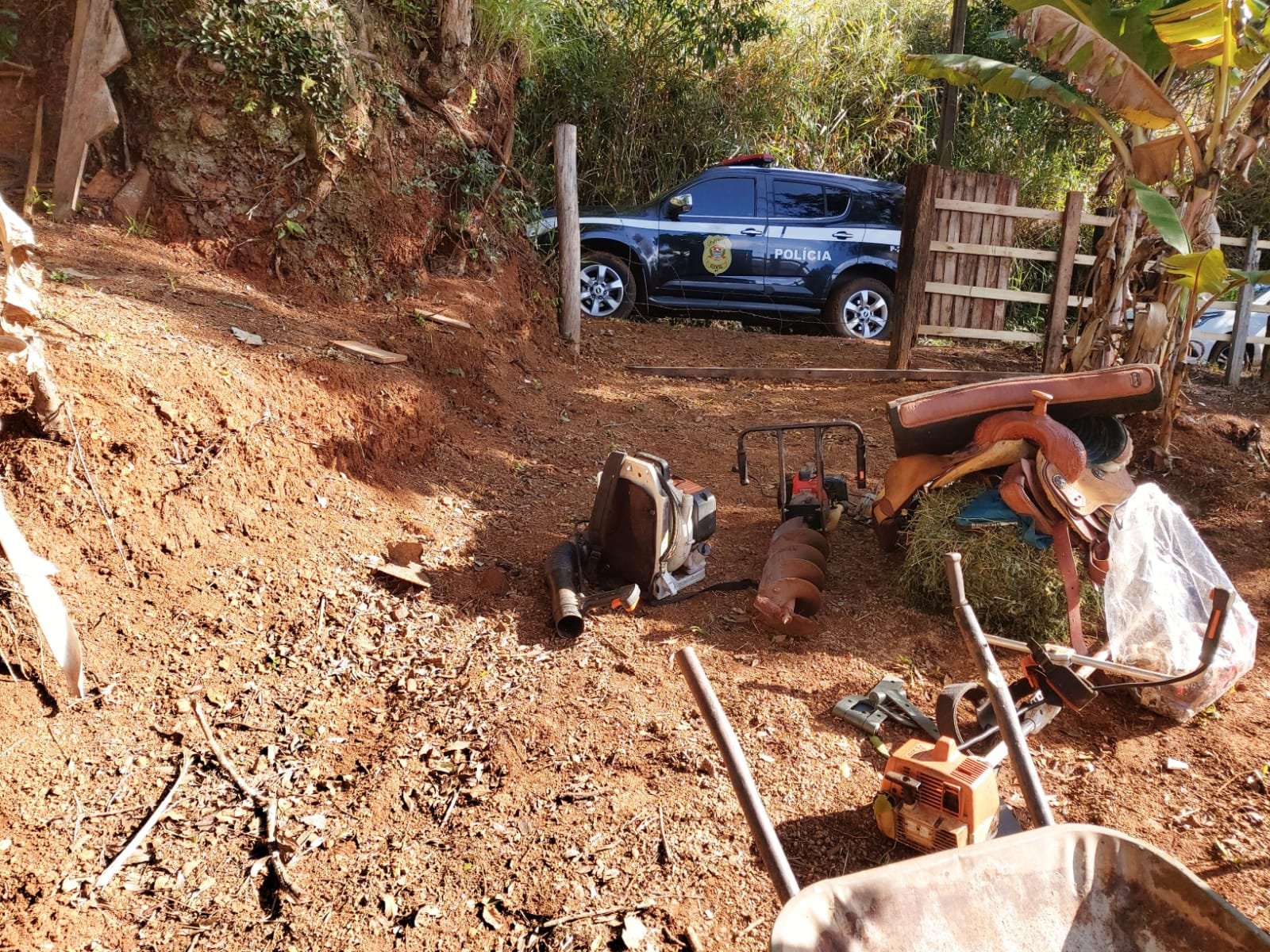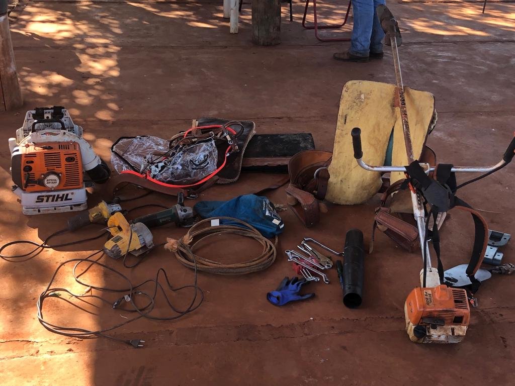 Os materiais estavam em um terreno na Vila Ema, às margens do Ribeirão Lavapes. Foram localizados fardos de alfafa, ração de cavalo, sela de montaria, máquina costal, soprador, makita, lixadeiras, laços de rodeio, jogo de chave, furador manual, cabeçada de montaria, além dos três bezerros raça Sinepol e uma égua quarto de Milha.