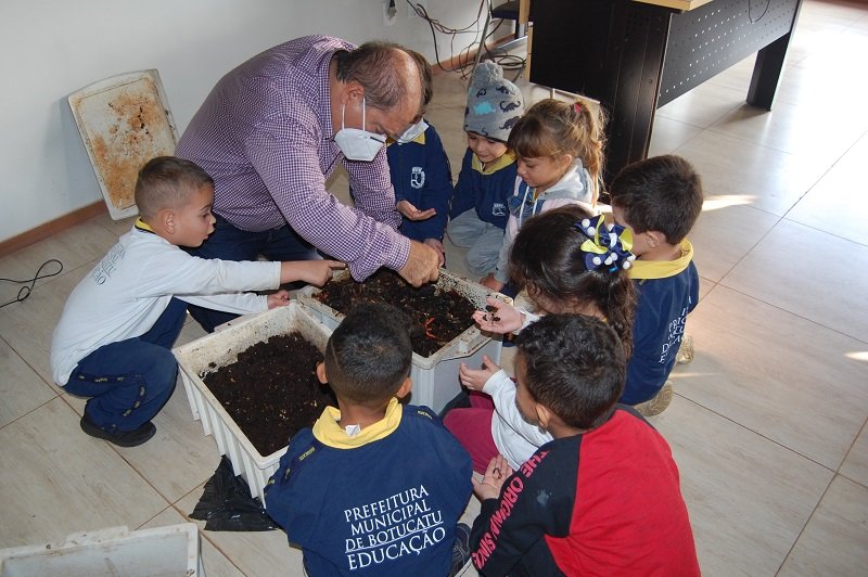 Reunidos no auditório das Fazendas de Ensino, Pesquisa e Extensão da FCA, na Fazenda Lageado, alunos de 4 a 9 anos das escolas Centro Educacional Infantil José Luiz Amat, situado na Boa Vista e EMEFEI Luiz Carlos Aranha Pacheco, localizado no Jardim Paraíso, ouviram atentamente as explicações, fizeram perguntas e viram de perto o funcionamento de uma composteira.