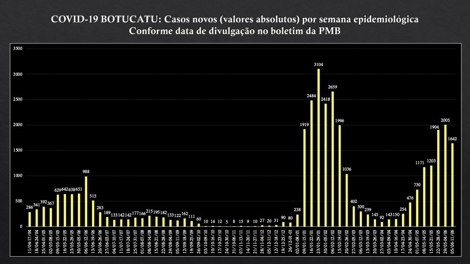 Os casos de Covid-19 tiveram a primeira semana de queda em Botucatu, após nove períodos seguidos de alta. É o que aponta o boletim epidemiológico divulgado pela Secretaria Municipal de Saúde no sábado, 11 de junho.