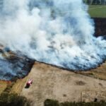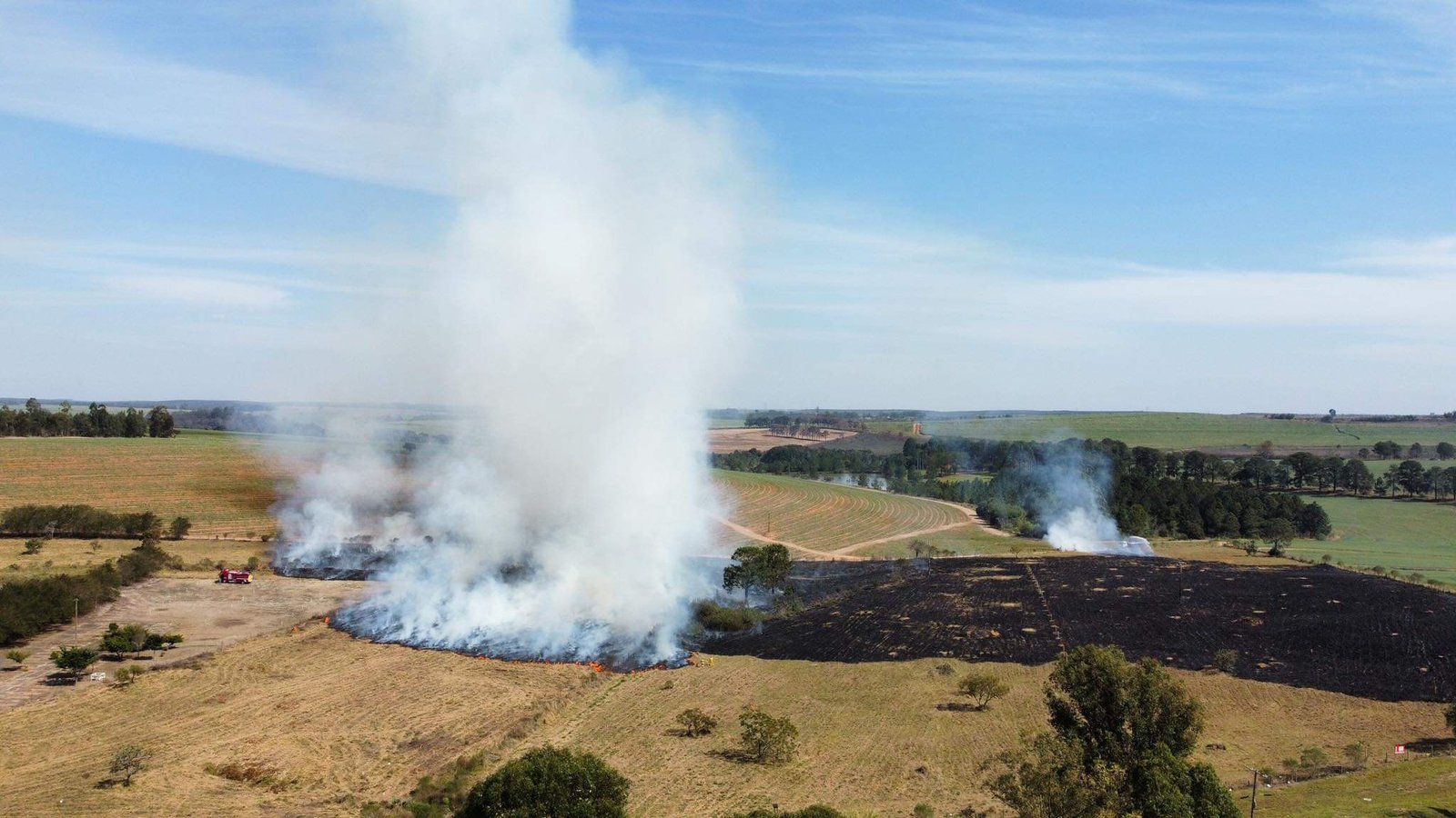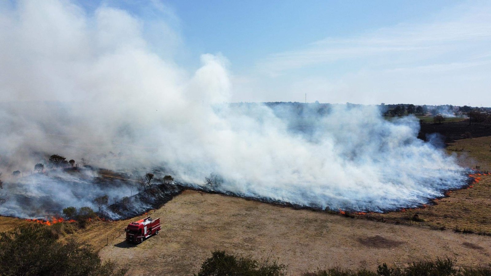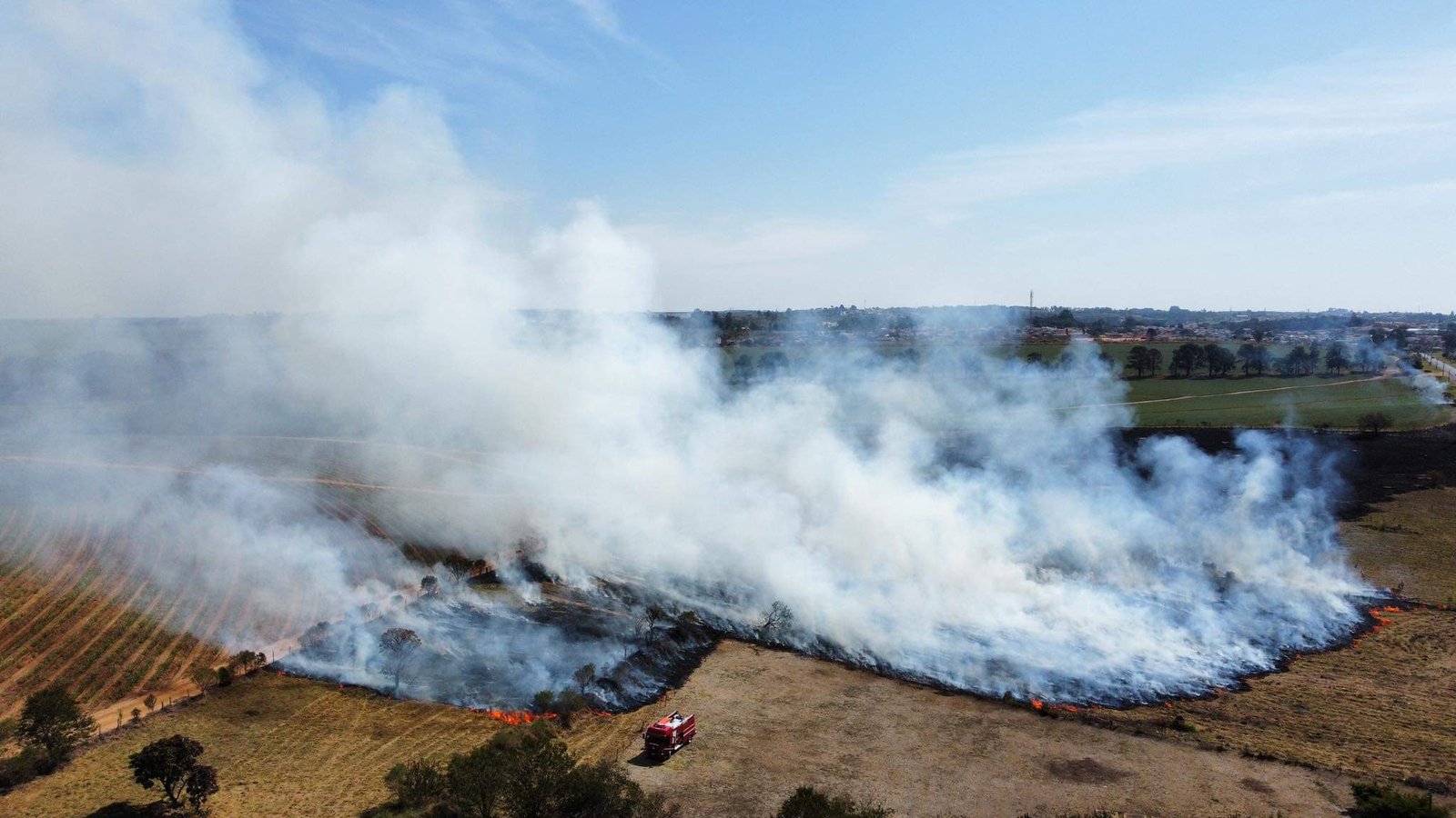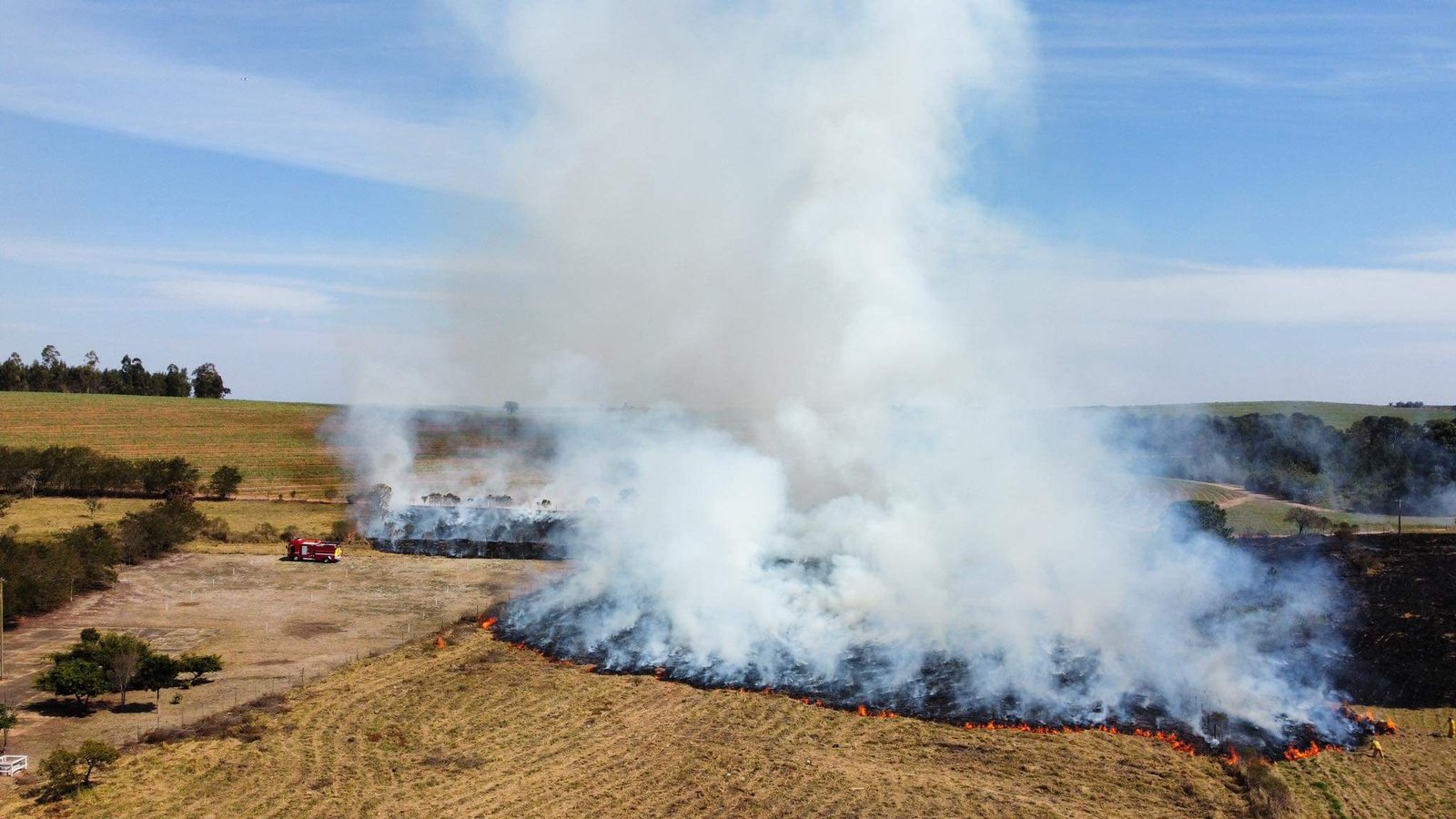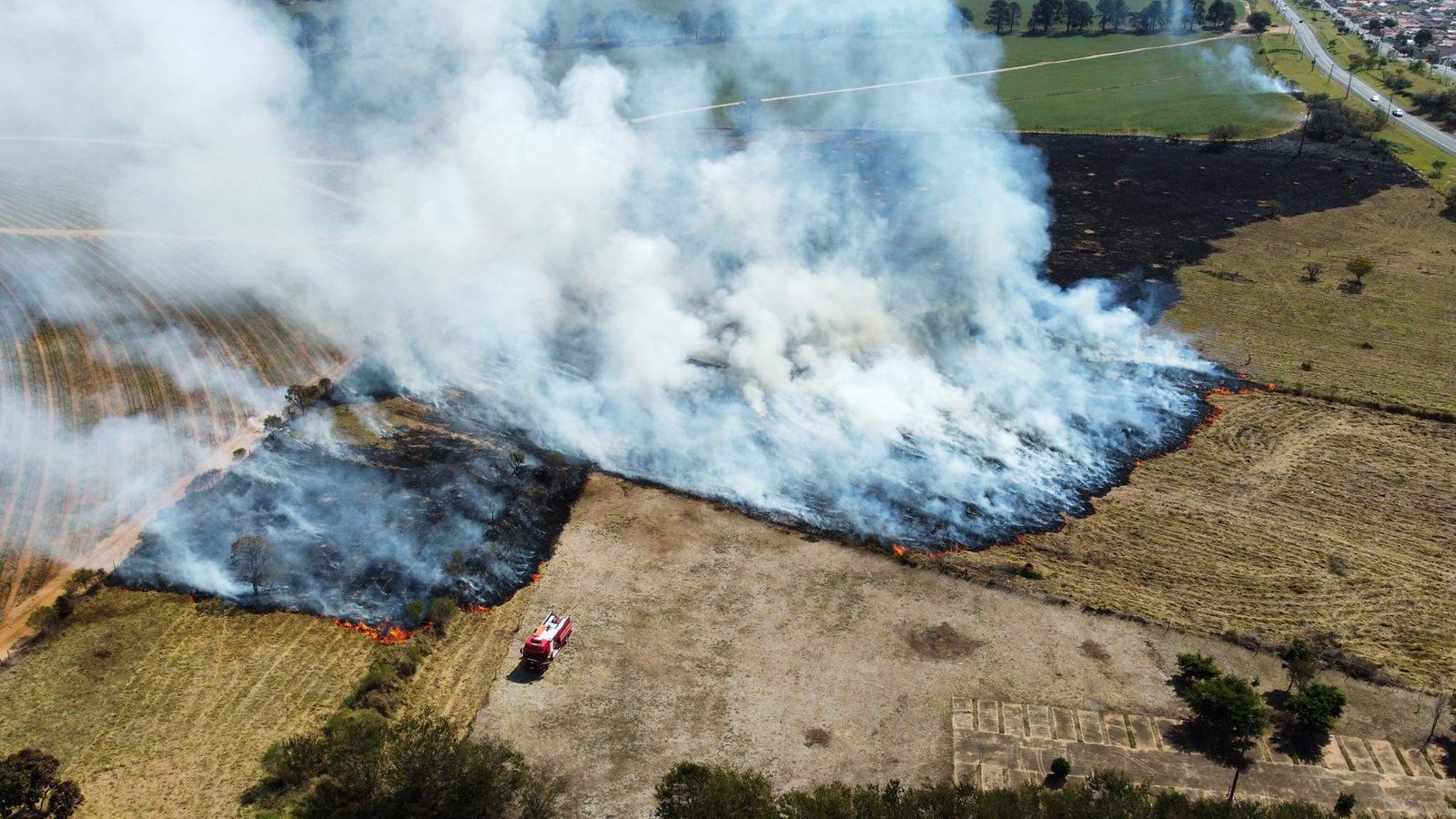 Incêndio consome vegetação em área rural próxima à Rodovia Gastão Dal Farra em Botucatu. O fato ocorre desde o final da manhã deste domingo, 24 de julho.