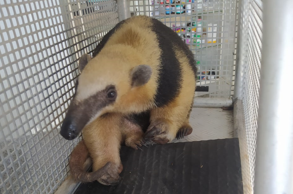 Guarda Municipal resgata tamanduá próximo a ferrovia em Rubião Júnior
