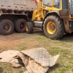 Material encheu a caçamba de dois caminhões e terá destinação adequada e reciclagem