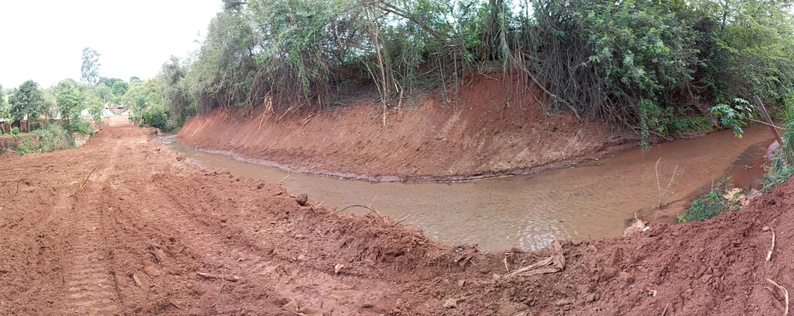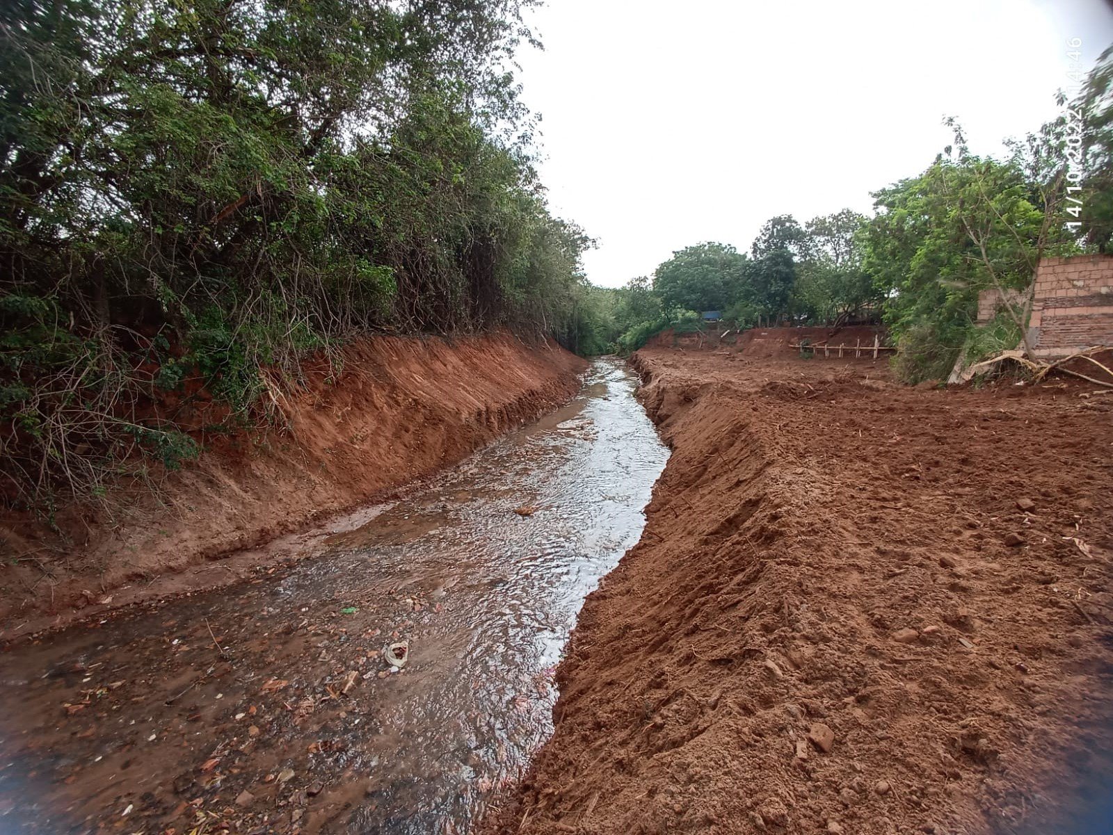 O serviço, realizado em dois trechos numa extensão aproximada de 900 metros, tem como objetivo melhorar a fluidez, a qualidade e a disponibilidade das águas, bem como a regularização das margens do afluente.