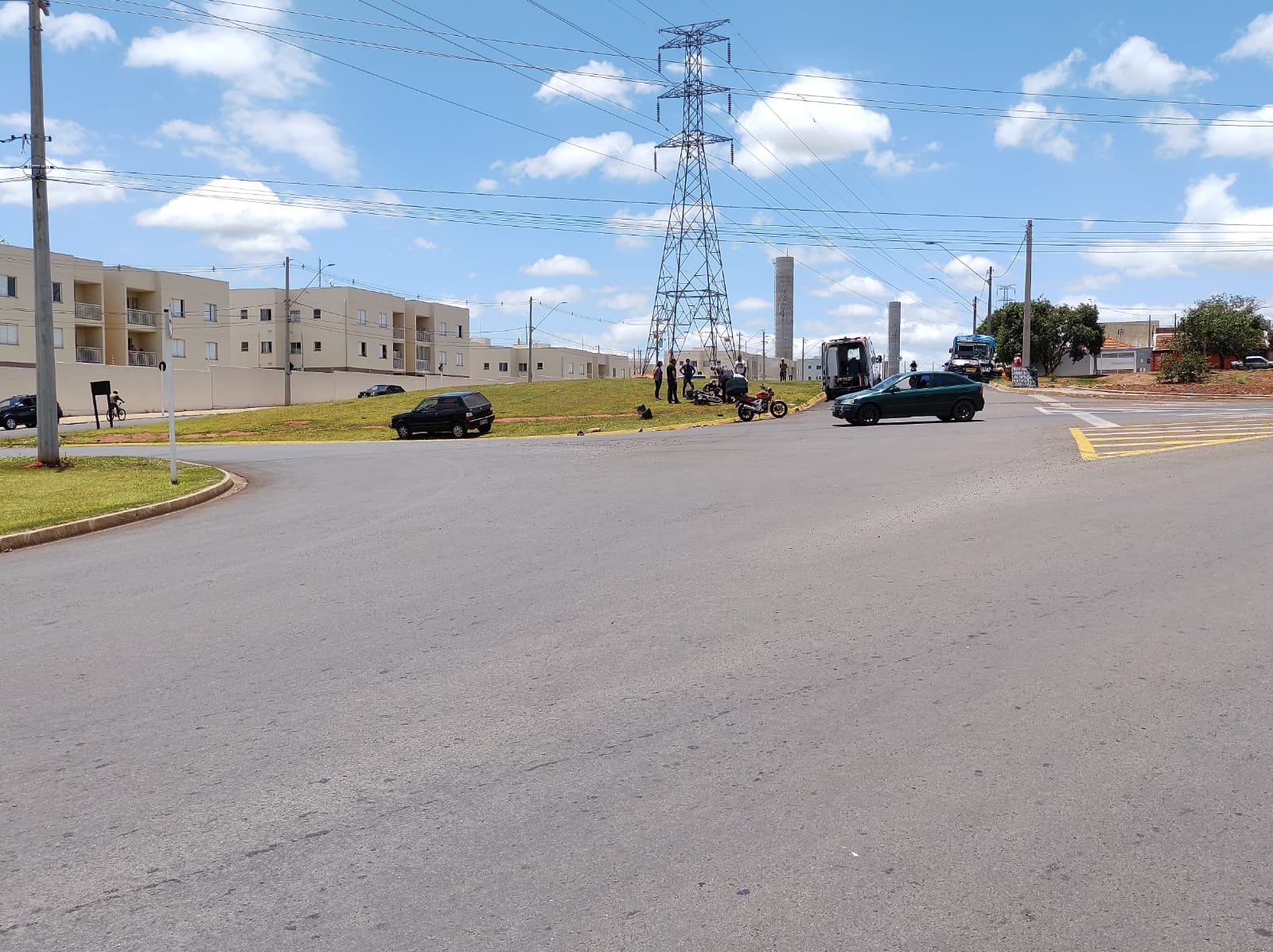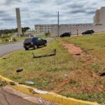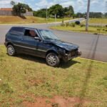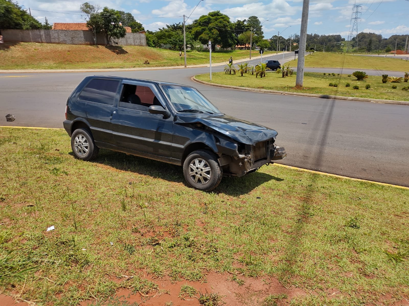 Ao avançar a pista, atingiu uma motocicleta que vinha pela avenida Braz de Assis Nogueira. O impacto fez com que a frente do Uno ficasse destruída e o motociclista arremessado até o canteiro da rotatória.