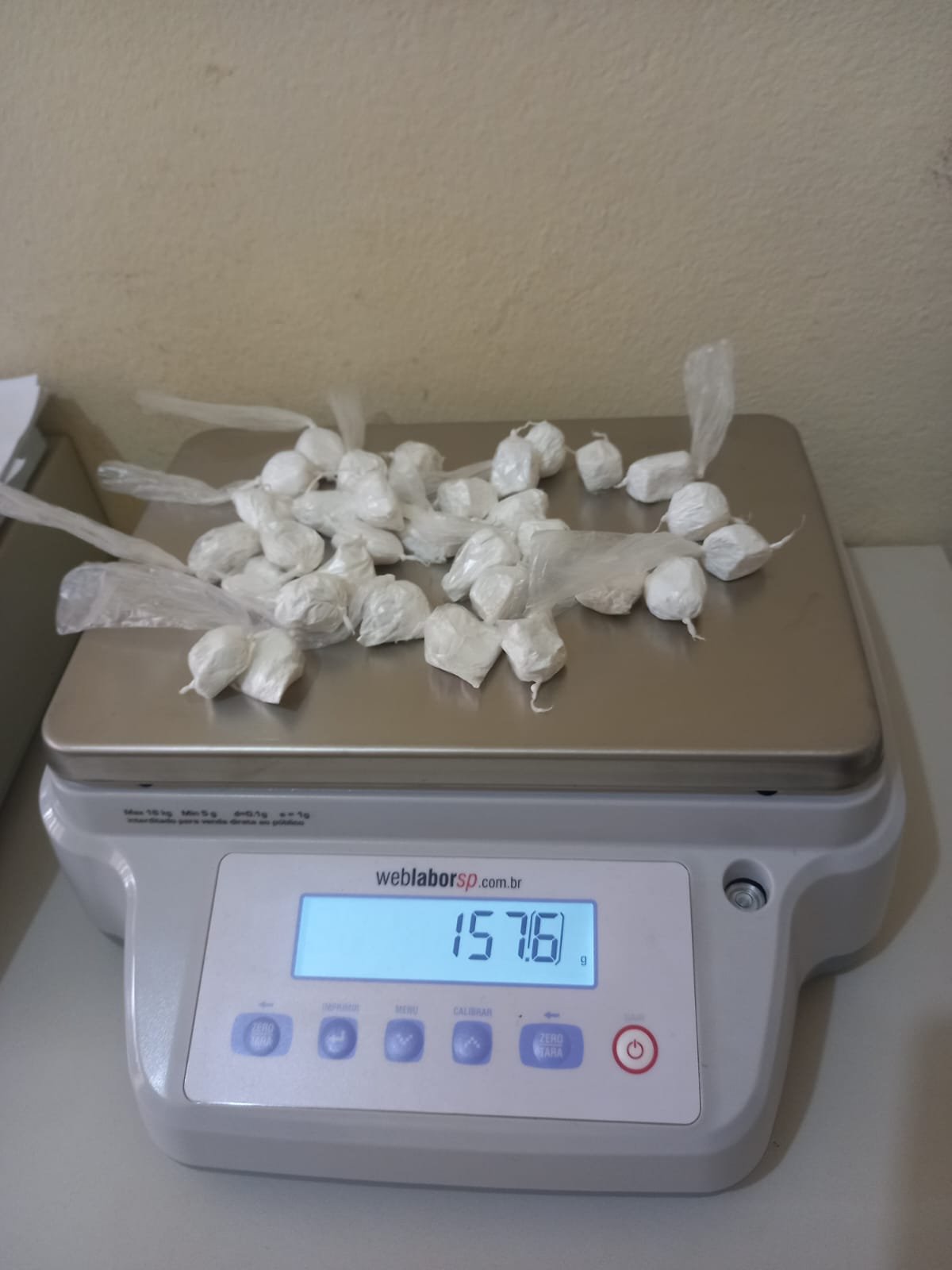 Segundo a Delegacia de Polícia do Município, foi apreendido na residência mais de um quilo de cocaína, sendo um “tijolo”, uma porção solta e mais 32 porções embaladas e prontas para comércio. O peso total foi de 1.232,9 gramas.