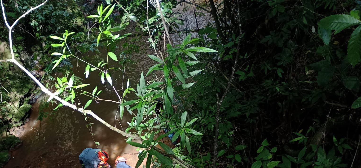 Bombeiros resgatam adolescente que sofreu queda em barranco de cachoeira