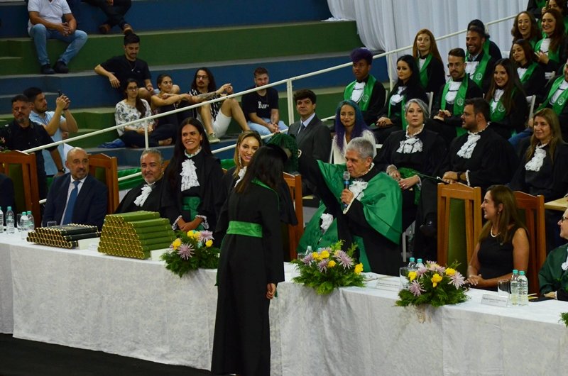 A solenidade teve sequência com a realização dos juramentos, a outorga de grau e recebimento do diploma para os formandos, entrega de prêmios e as homenagens de cada curso.