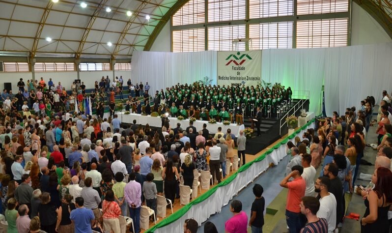 No dia 27 de janeiro, pela primeira vez desde 2019, a solenidade de colação de grau dos cursos de graduação da Faculdade de Medicina Veterinária e Zootecnia (FMVZ) da Unesp, câmpus de Botucatu, foi realizada de maneira presencial. No Ginásio Poliesportivo da Fazenda Experimental Lageado, colaram grau os concluintes da 55ª Turma de Medicina Veterinária e 42ª Turma de Zootecnia.