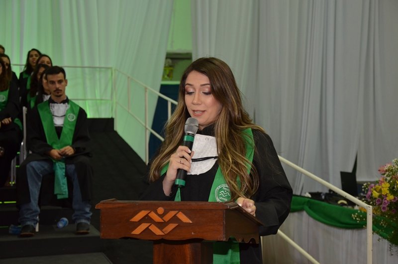 A professora Luciane dos Reis Mesquita, paraninfa dos concluintes de Medicina Veterinária, agradeceu a escolha do seu nome para a homenagem e destacou momentos de grande alegria, união e superação de dificuldades. Também fez questão de homenagear pais e familiares. “Eles estão muito orgulhosos porque todo o esforço que fizeram para que vocês se formassem valeu a pena. Eles já devem ter contado para os vizinhos, os amigos, os parentes nos grupos de whatsapp das famílias e até para algum desconhecido no mercado e na padaria. Podem ter certeza que eles fizeram isso e eles estão certos! Essa notícia é para ser comemorada e jogada aos quatro ventos”. A paraninfa também aconselhou seus ex-alunos, agora seus novos colegas de profissão: “Força, paciência e sabedoria no exercício da profissão. Cada vez que o desânimo bater, lembrem-se que vocês já superaram muitas pedras no caminho. Vocês serão capazes de vencer esses obstáculos. Acreditem no potencial de vocês. Todos são muito bons no que fazem. Nunca duvidem de sua capacidade. Por fim, nunca esqueçam da humildade e da empatia para lidar com o próximo”.
