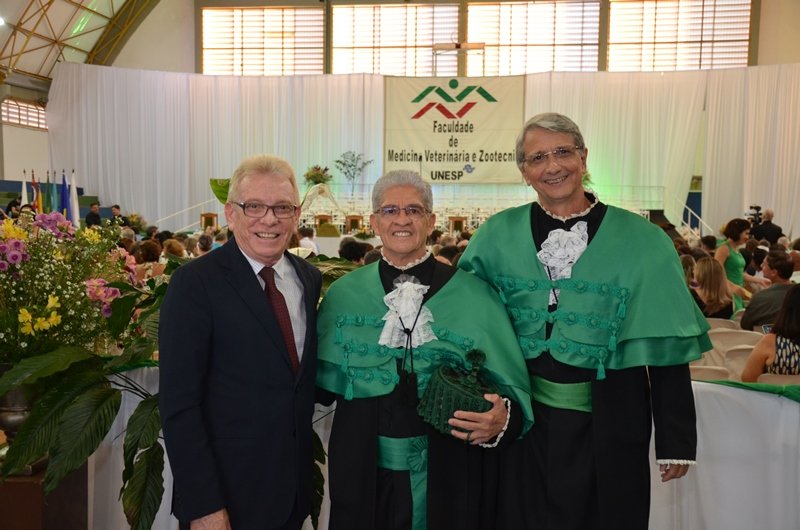 Ato oficial da Congregação da Faculdade, a solenidade teve a participação dos professores Cezinande de Meira, diretor da FMVZ; Mario de Beni Arrigoni, vice-diretor da FMVZ; Caio Antonio Carbonari, vice-diretor da Faculdade de Ciências Agronômicas; Willian Fernando Zambuzzi, vice-diretor do Instituto de Biociências e Maria Cristina Pereira Lima, diretora da Faculdade de Medicina. Também estiveram presentes Odemilson Donizete Mossero, presidente do Conselho Regional de Medicina Veterinária do Estado de São Paulo, a vereadora Alessandra Lucchesi de Oliveira e os membros da Congregação da FMVZ, colegiado máximo normativo e deliberativo em matéria de ensino, pesquisa, extensão universitária e administração.