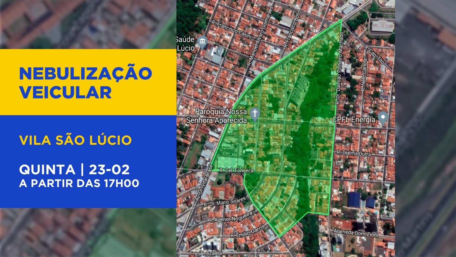 A Vigilância Ambiental em Saúde realizará nesta quinta, 23 de fevereiro, a atividade de nebulização veicular (aplicação de inseticida) na Vila São Lucio.
