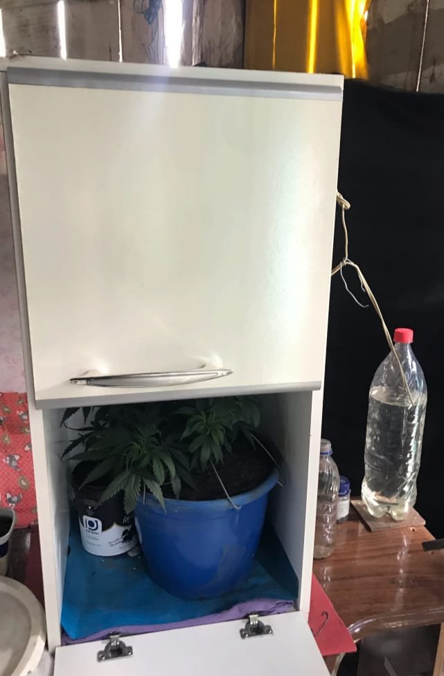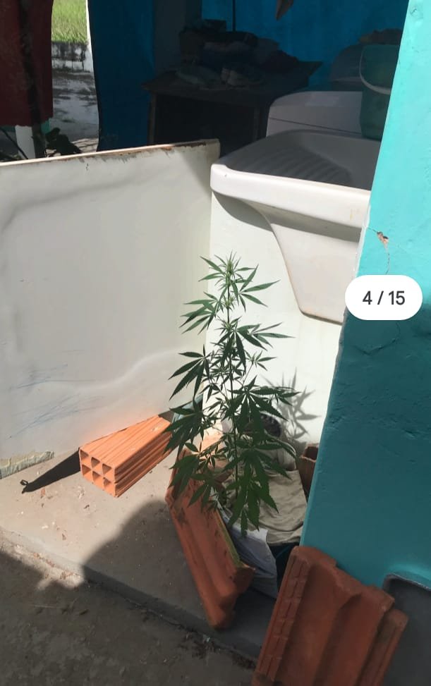 Dentro do imóvel os policiais encontraram diversos pés de cannabis (planta que origina a maconha), cultivados em vasos. Também havia plantas em “estufas” improvisadas e algumas já em processo de secagem das folhas.