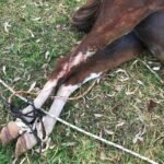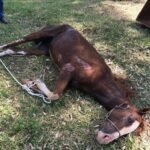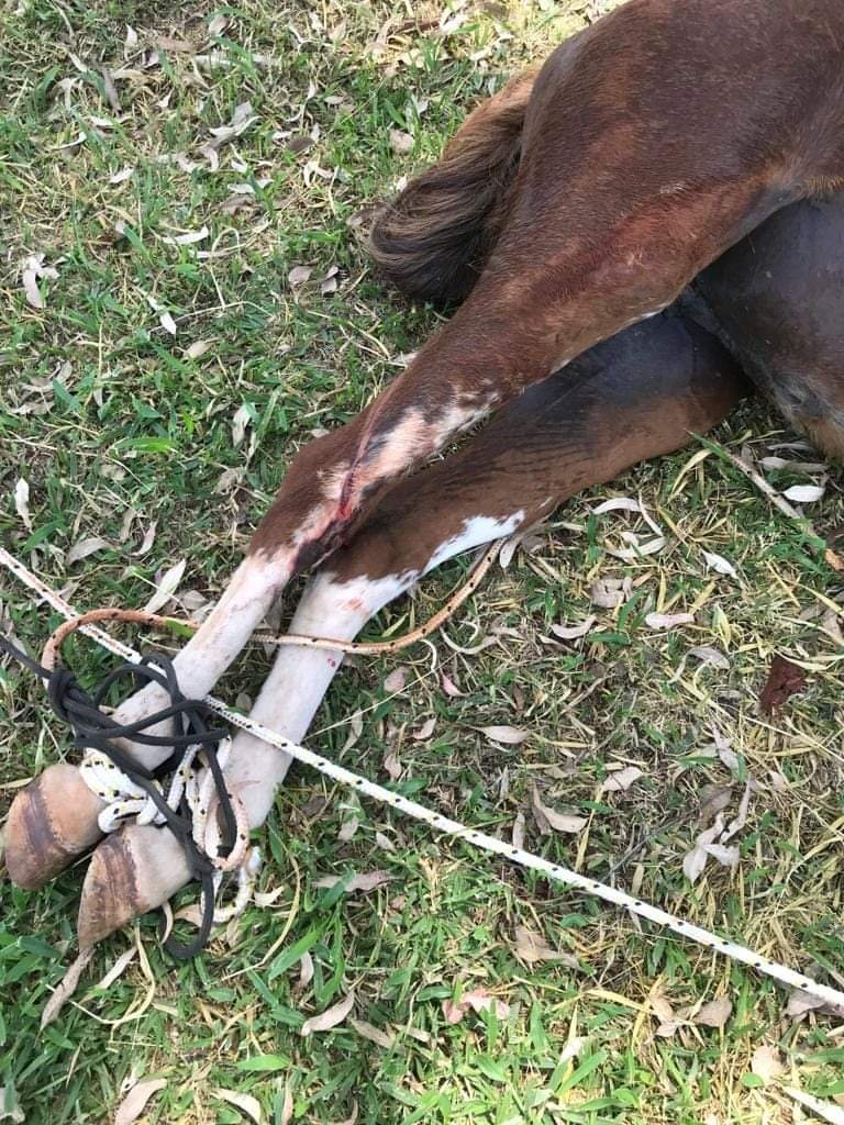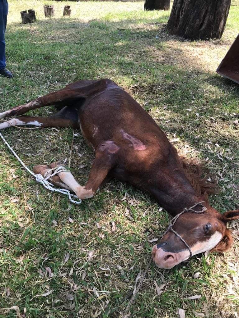 Cavalo é resgatado ferido e agonizando em terreno; proprietário foi levado para delegacia