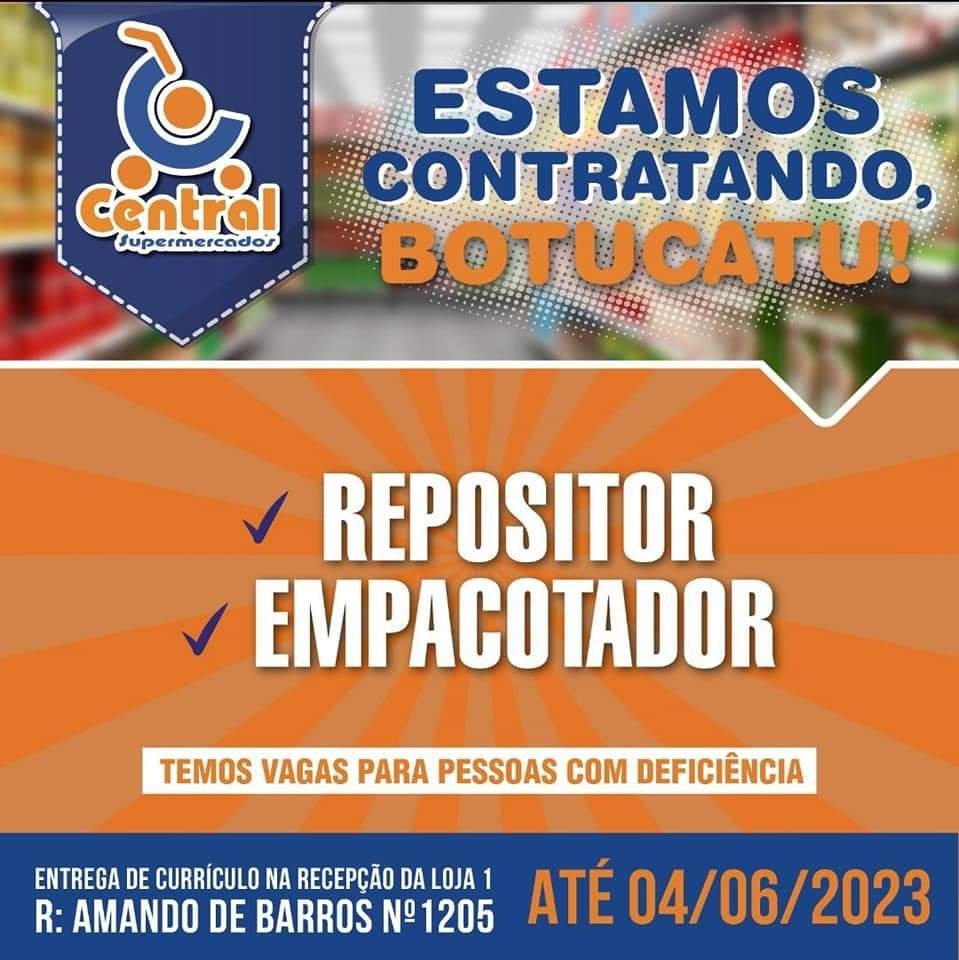 A rede Central Supermercados está com novas vagas de trabalho em aberto para funções operacionais de suas lojas em Botucatu.