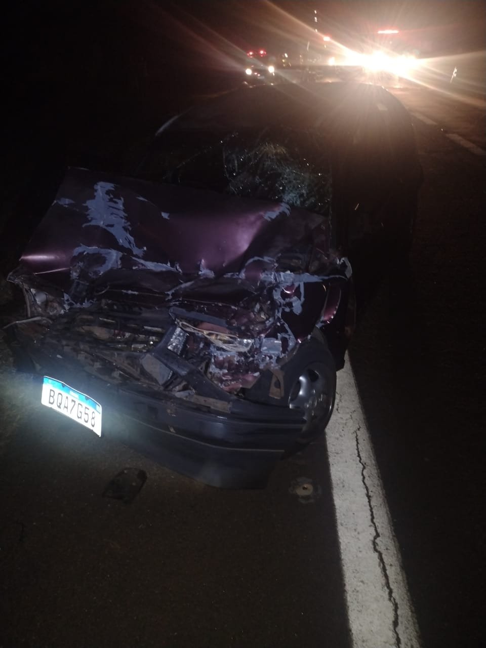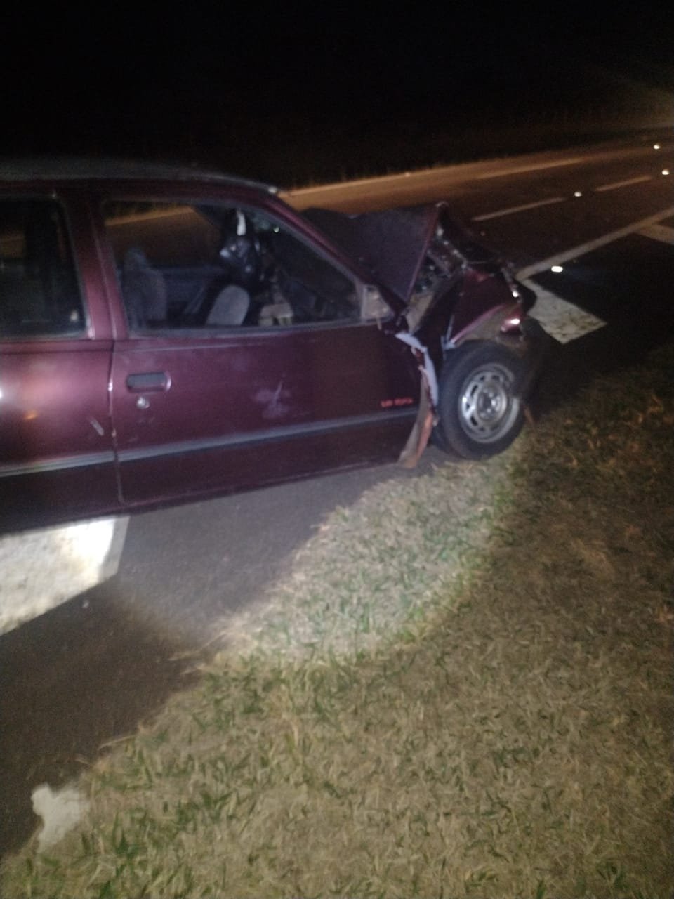 Segundo informações, um Chevrolet Kadett, com placas de Pederneiras, colidiu contra a traseira de um caminhão. O impacto destruiu a parte frontal do carro.