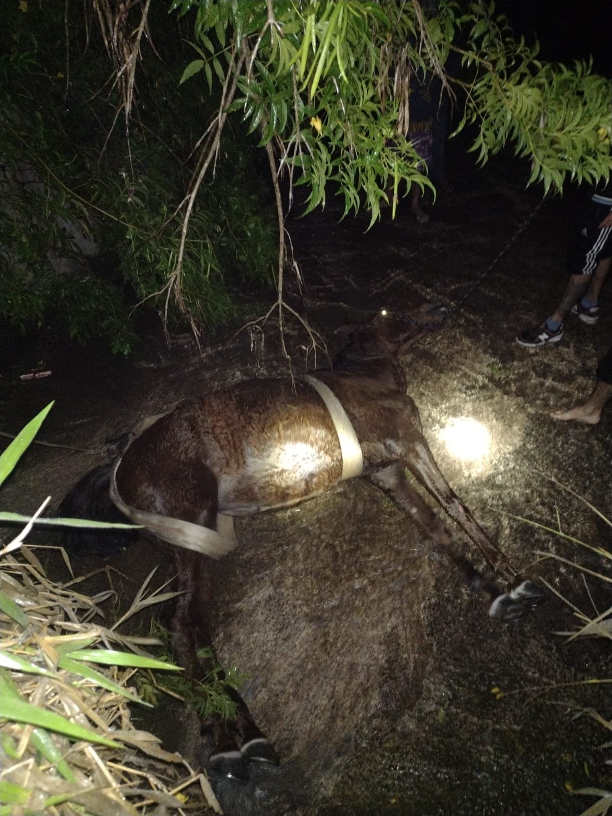 O Corpo de Bombeiros resgatou na noite de quinta-feira, 15 de junho, um cavalo que caiu dentro de uma canaleta de escoamento de água existente nas imediações do Residencial Cachoeirinha, em Botucatu.