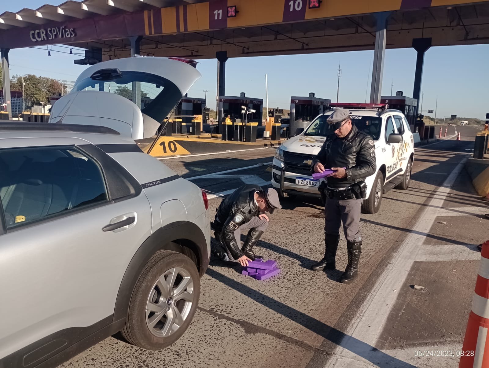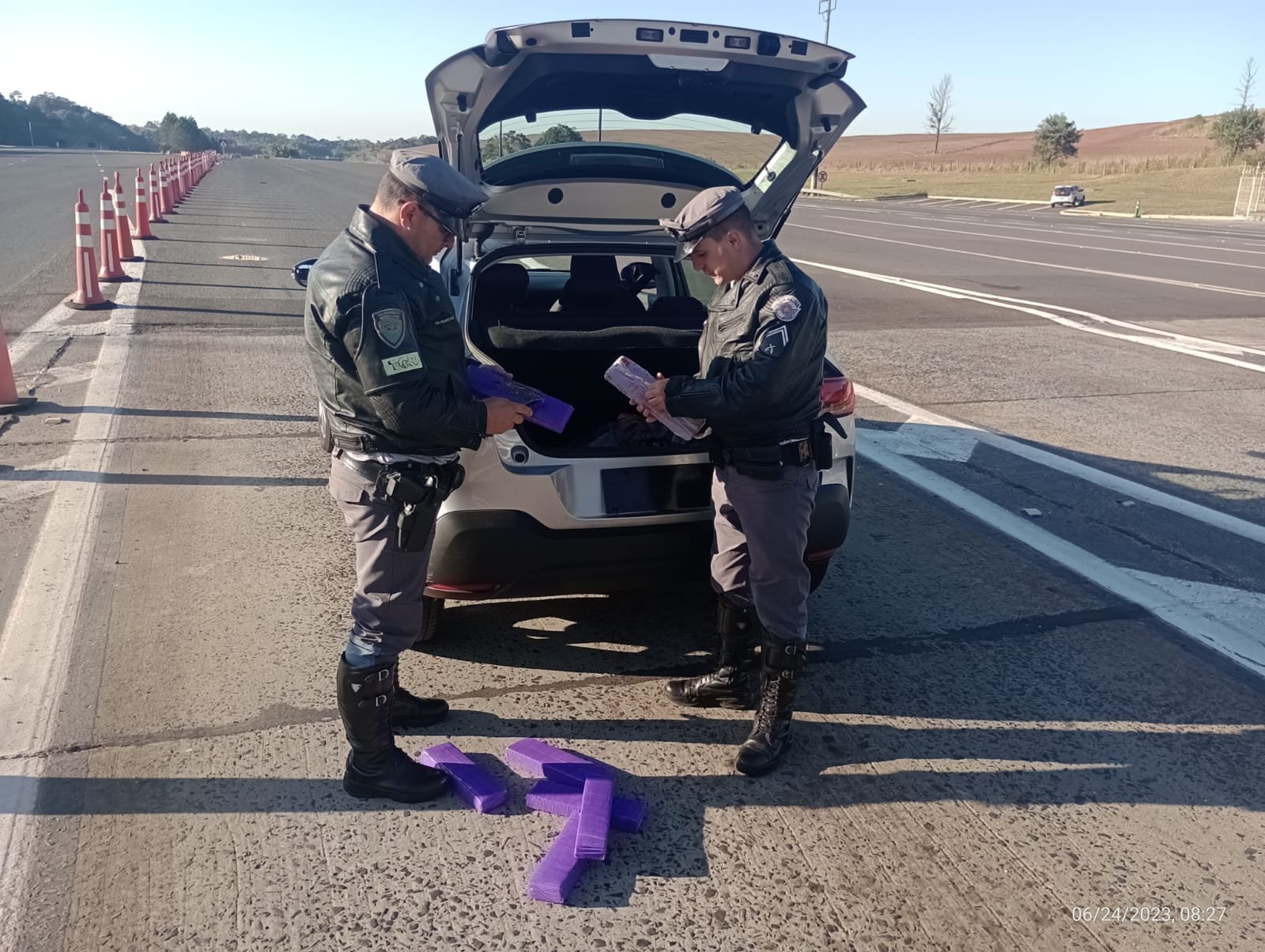 Motorista fica nervoso ao pagar pedágio e é flagrado com tijolos de maconha