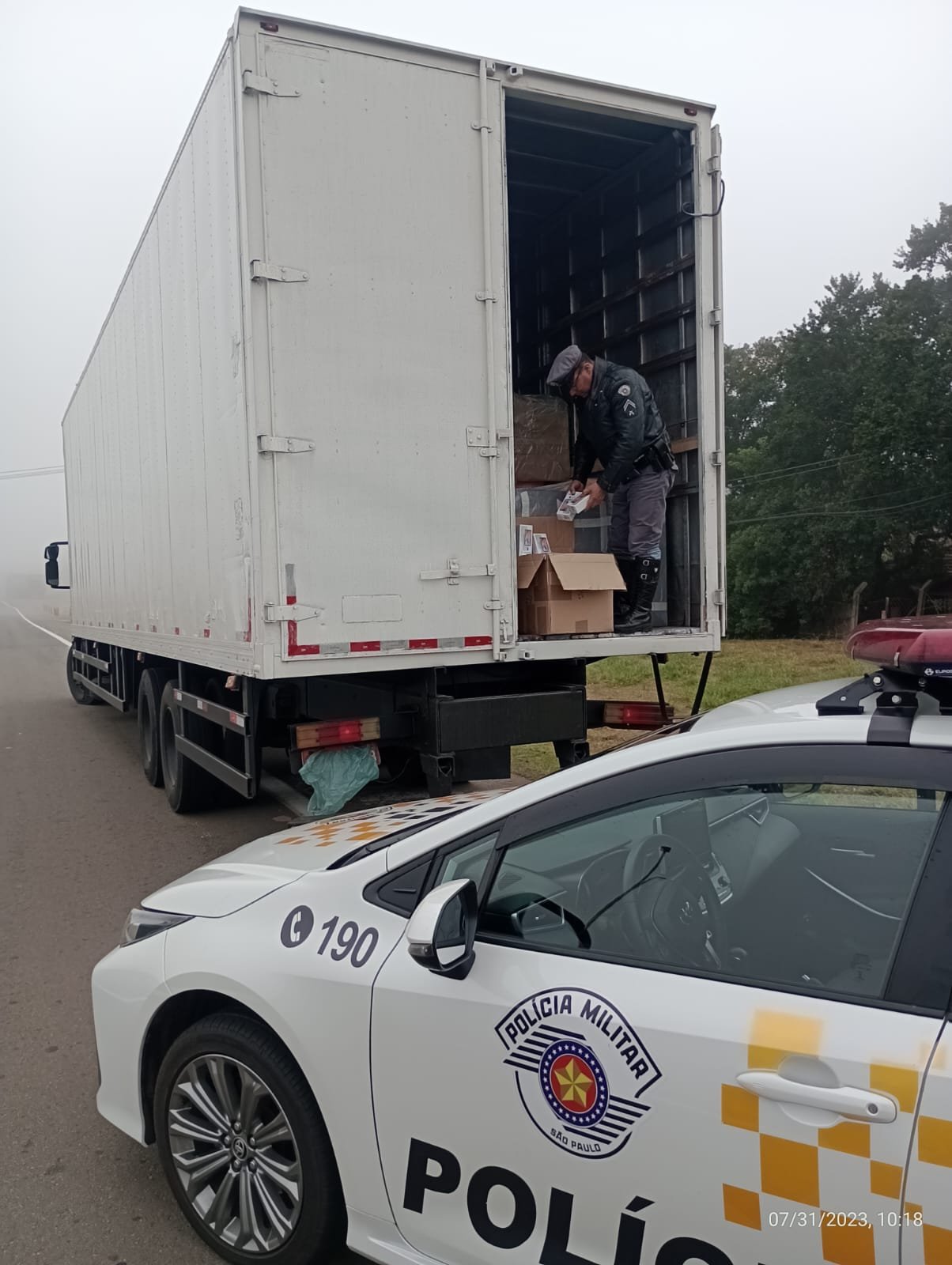 O caso foi registrado na Rodovia Castello Branco (SP 280), em Itatinga. Consta em boletim de ocorrência que era promovido patrulhamento pelo trecho quando policiais abordaram um caminhão Iveco.