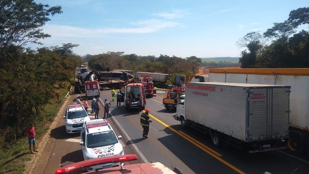 Um caminhoneiro sobreviveu após ficar preso às ferragens em um acidente que envolveu três carretas, nesta terça-feira (1º), na Rodovia Deputado Leônidas Pacheco Ferreira (SP-304), em Iacanga (SP).