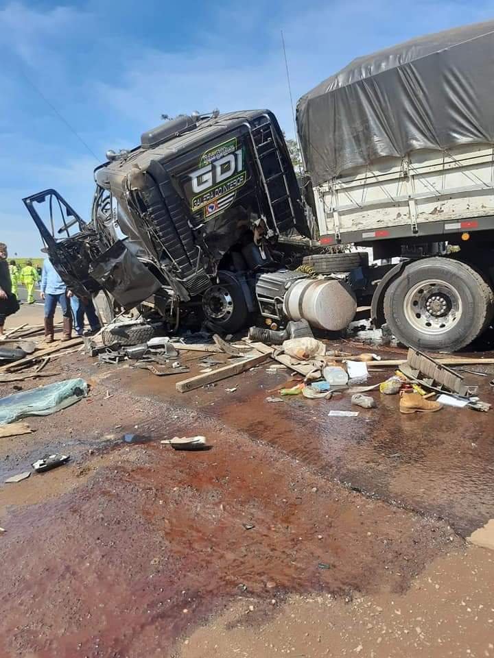 Caminhoneiro sai ileso de acidente entre carretas