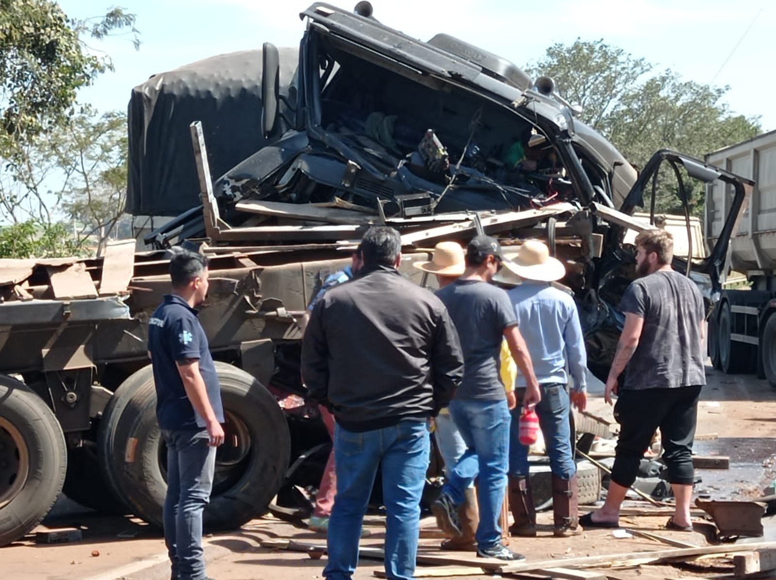 Motorista que estava na carreta entre os outros envolvidos na batida ficou preso nas ferragens